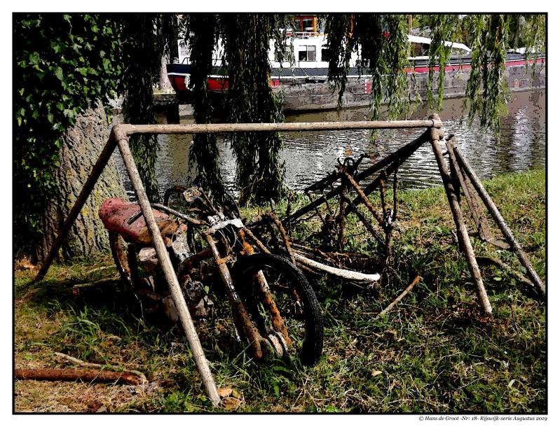 This is a place where people can enter Rijswijk from Delft. It's on the water and on the right of the sign RIJSWIJK, you see some old iron. Not striking. Most people cycle will passed thoughtlessly and if I had a great hurry I would have done it myself.