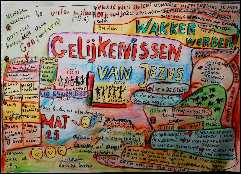 Above an HI-WI drawing from Matthew 25, the story that a young modern pastor chose as the most special.